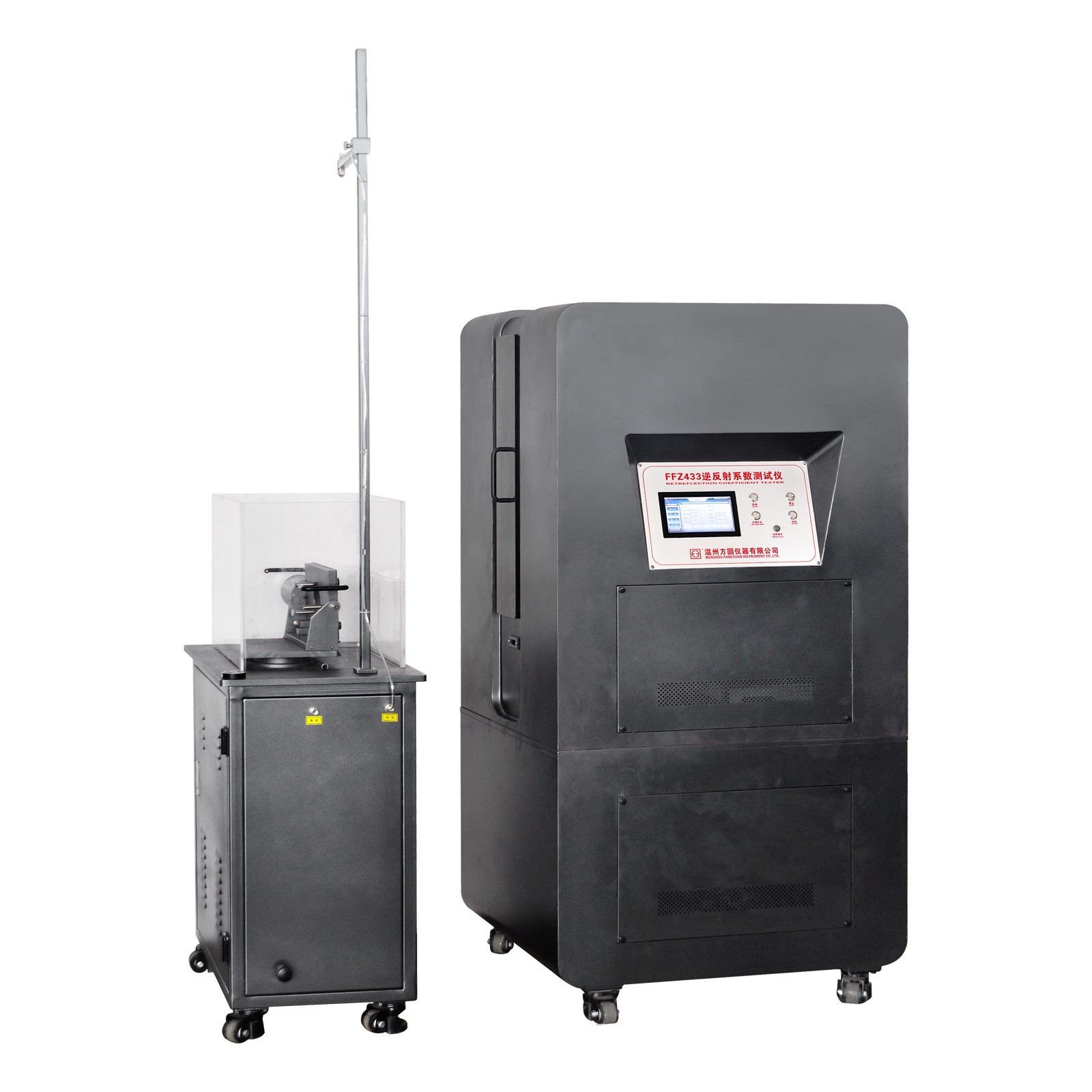 本公司自主研發(fā)FFZ433逆反射系數(shù)測(cè)試儀用于職業(yè)用高可視性警示材料、中小學(xué)生交通安全反光校服等材料在干狀態(tài)和淋雨濕狀態(tài)下反光性能的評(píng)定。